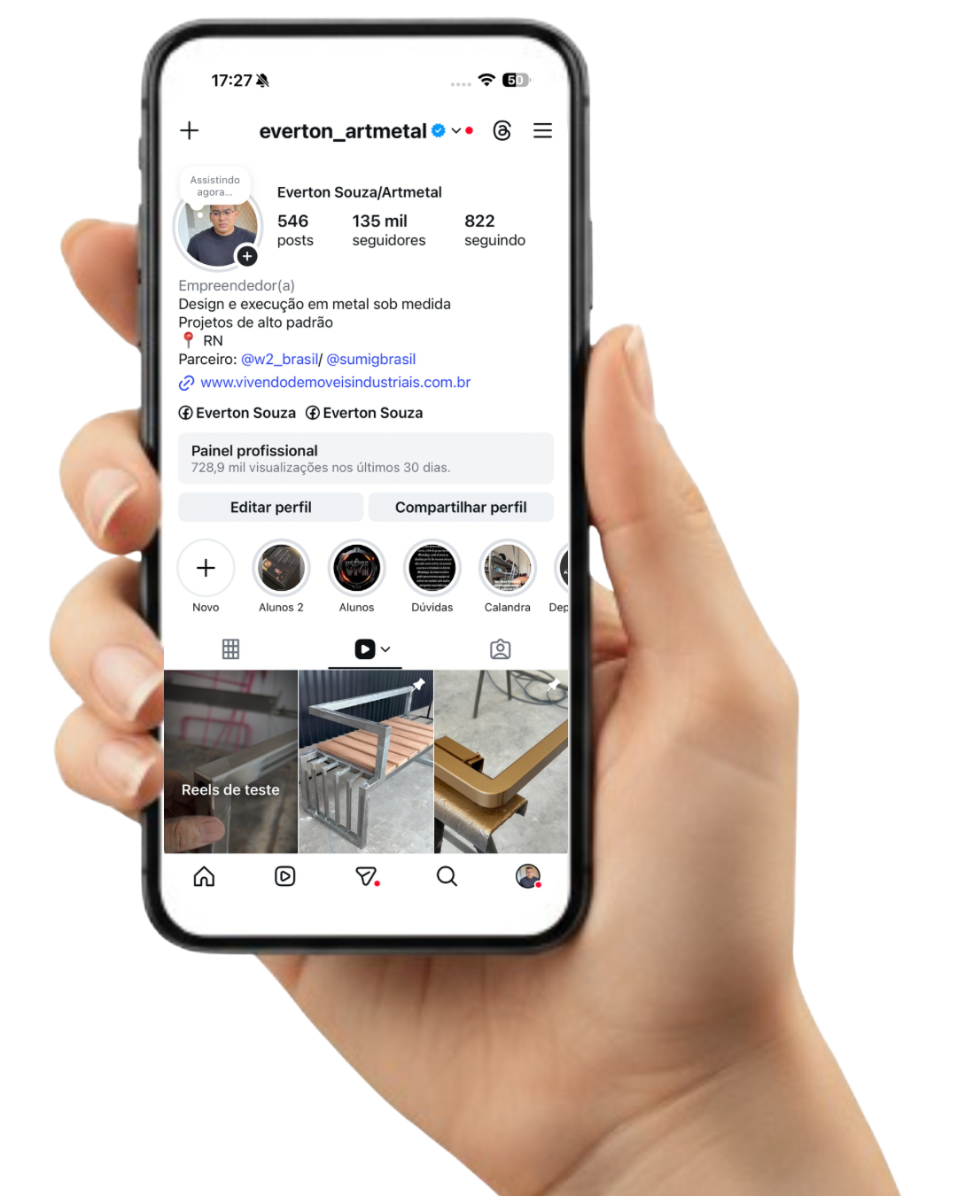 Especialista em móveis industriais de alto padrão, eu transformei os móveis industriais em minha principal fonte de renda, saindo da serralheria pesada, unindo técnica, design e acabamento minucioso. Reconhecido pela qualidade e profissionalismo, compartilho minha jornada e experiência com outros profissionais nas redes sociais, mostrando que é possível sair do básico e construir um negócio sólido com peças premium e autorais.